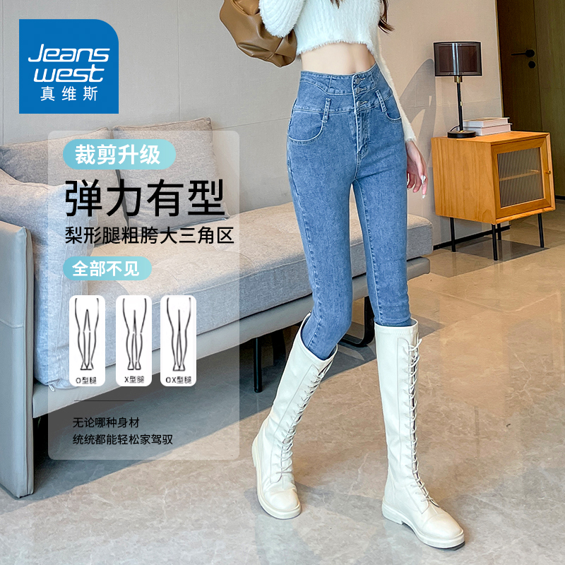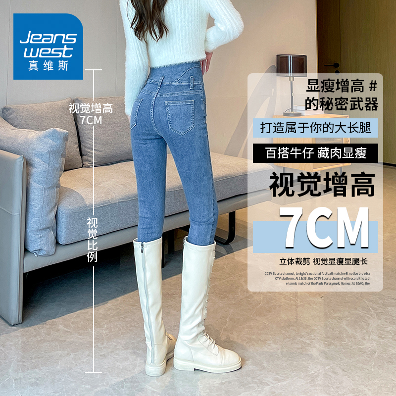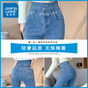显瘦九分裤 八分小个子高腰修身 子 女2025春秋新款 浅色微喇叭牛仔裤