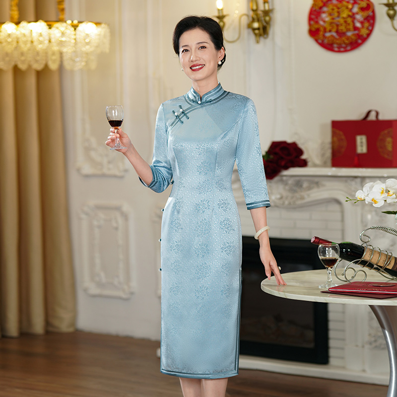 国风提花气质长裙 新款 秋水伊人新中式 改良旗袍连衣裙女2025年夏季