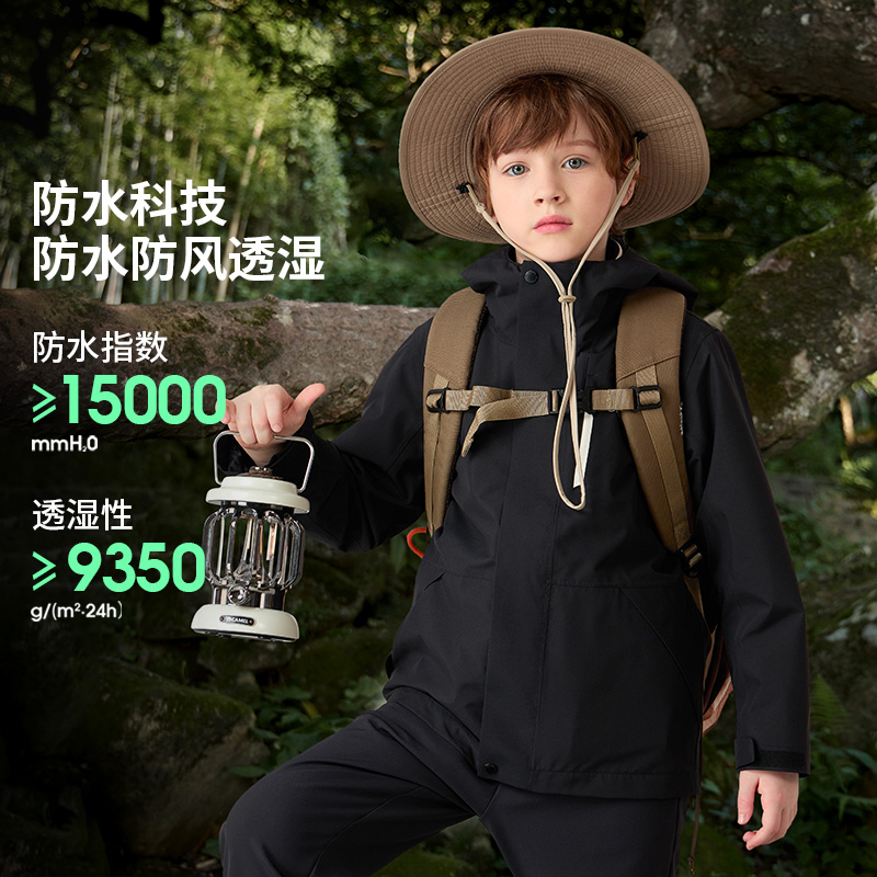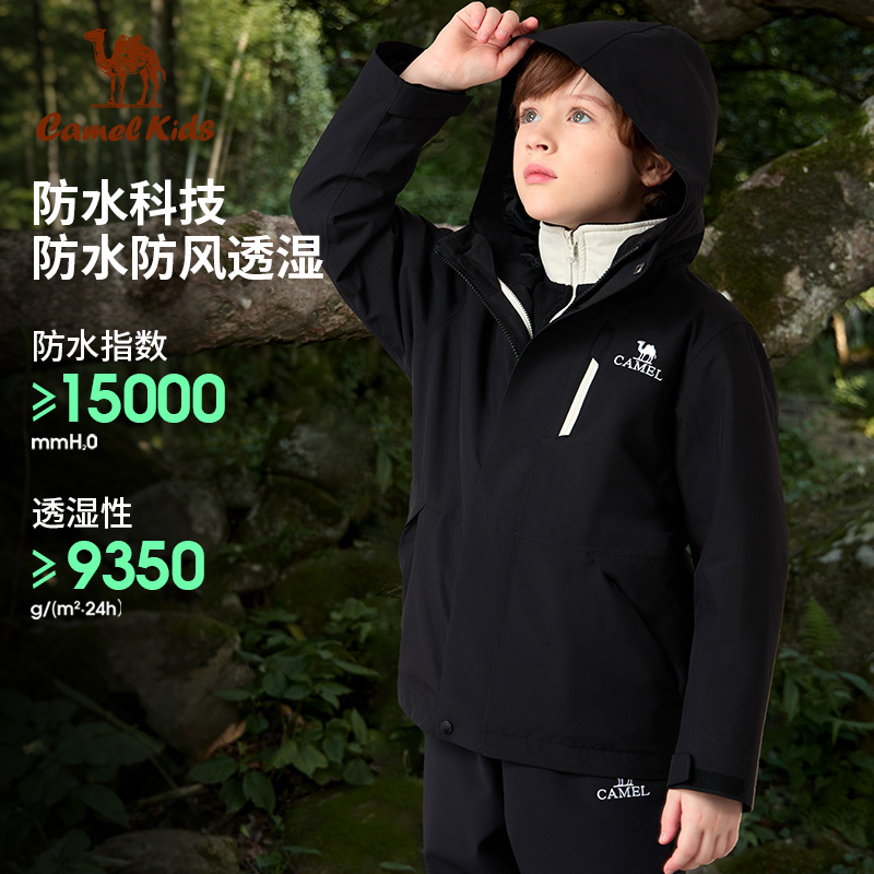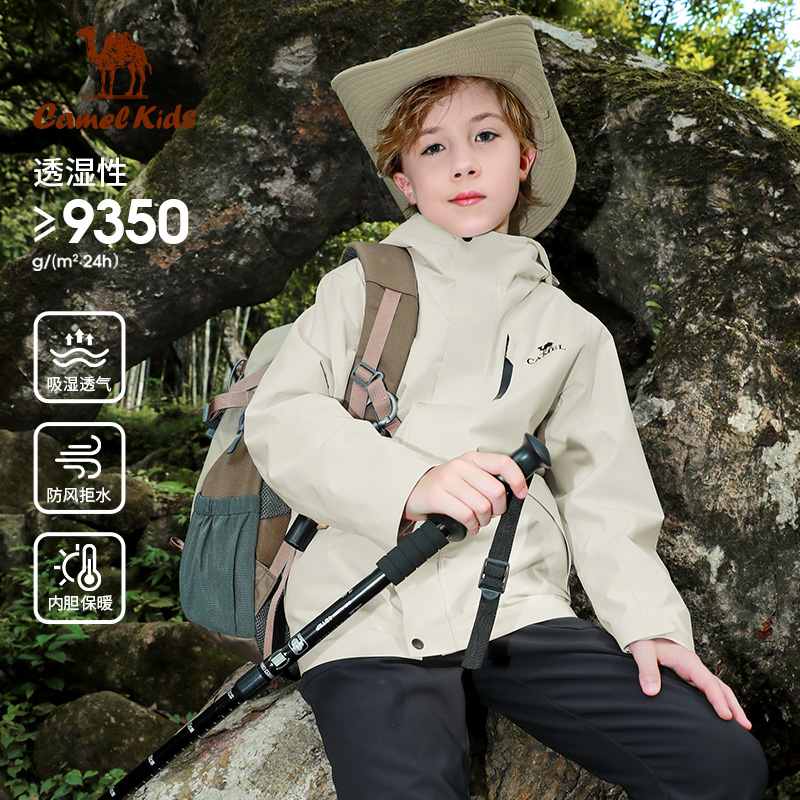 小骆驼童装 加绒男女童户外滑雪服保暖外套 儿童防水冲锋衣秋冬款