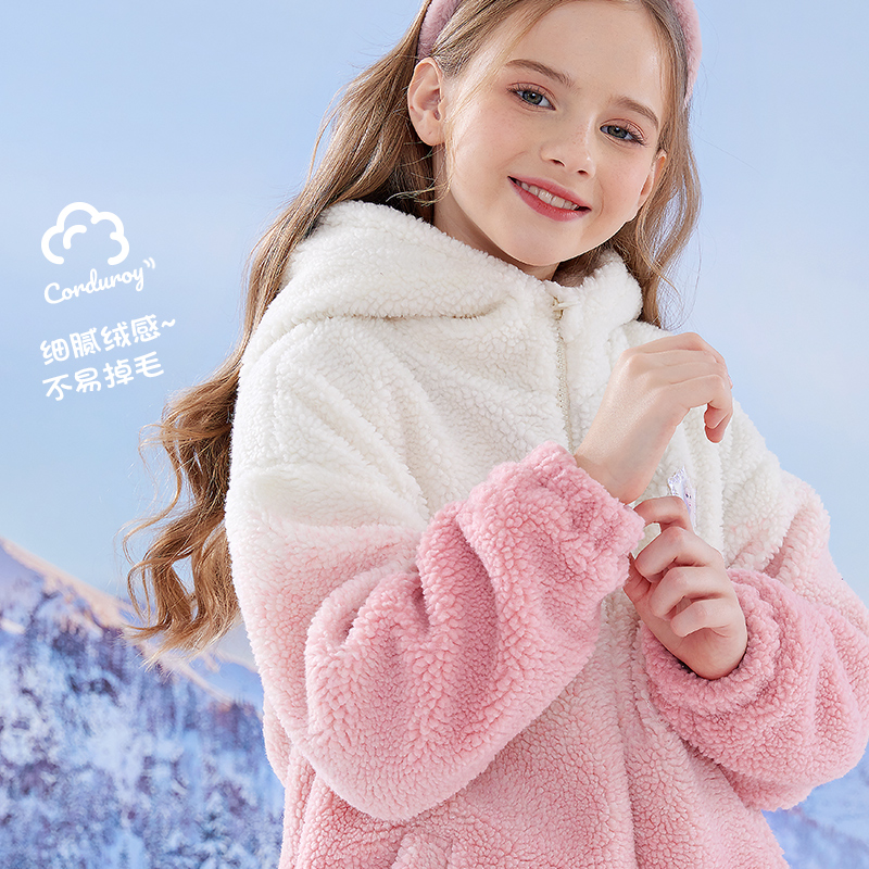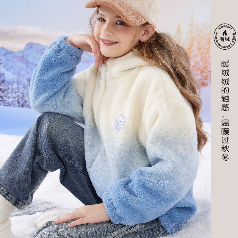 迪士尼女童外套秋冬2025新款 儿童加绒加厚毛毛衣洋气大童保暖童装