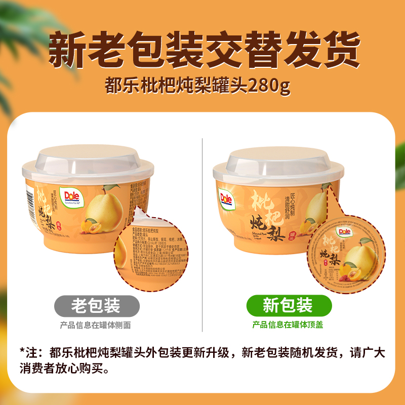 DOLE都乐枇杷炖梨280g 水果罐头方便食品休闲零食即开即食 3整箱装