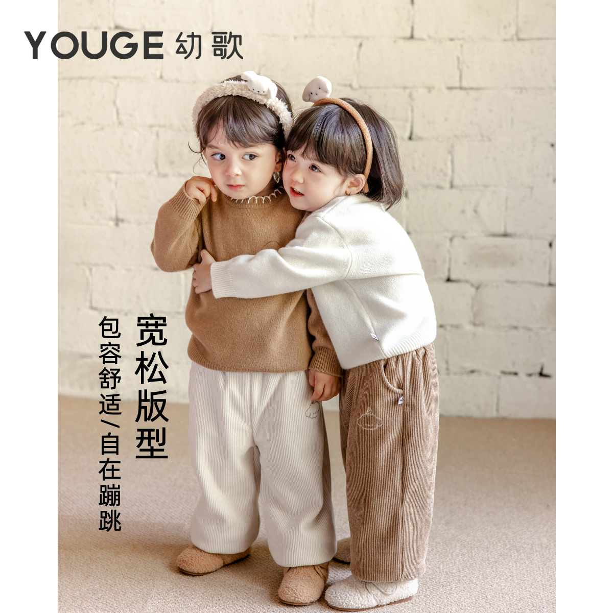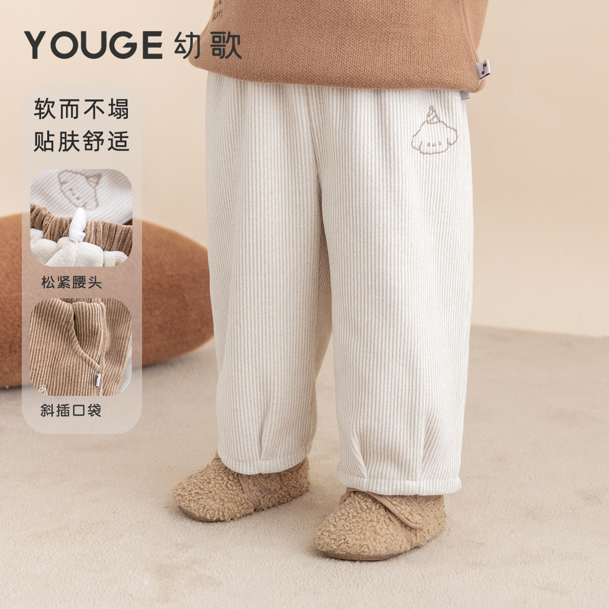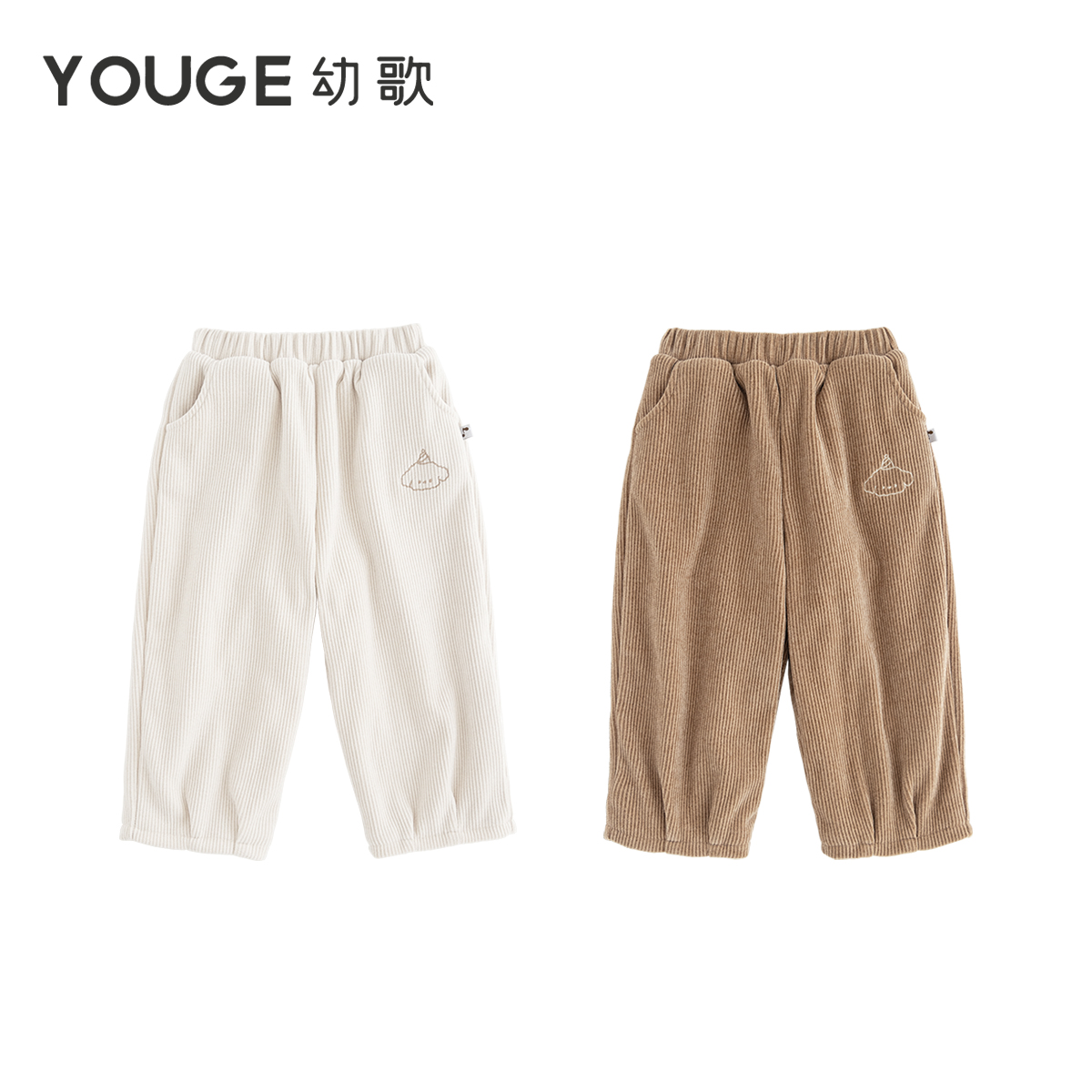 萌趣宽松斜插口袋动物简笔绣花休闲裤 新款 潮 婴幼儿冬季 YOUGE幼歌
