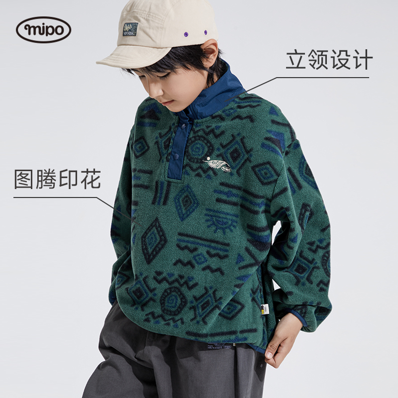 mipo秋冬季 儿童亲子摇粒绒卫衣男女童保暖印花户外休闲上衣抗静电