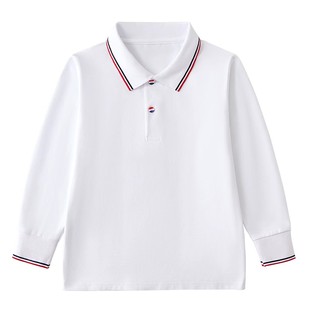 初高中小学生校服polo衫 t恤春秋儿童男女生白色上衣初中班服 长袖