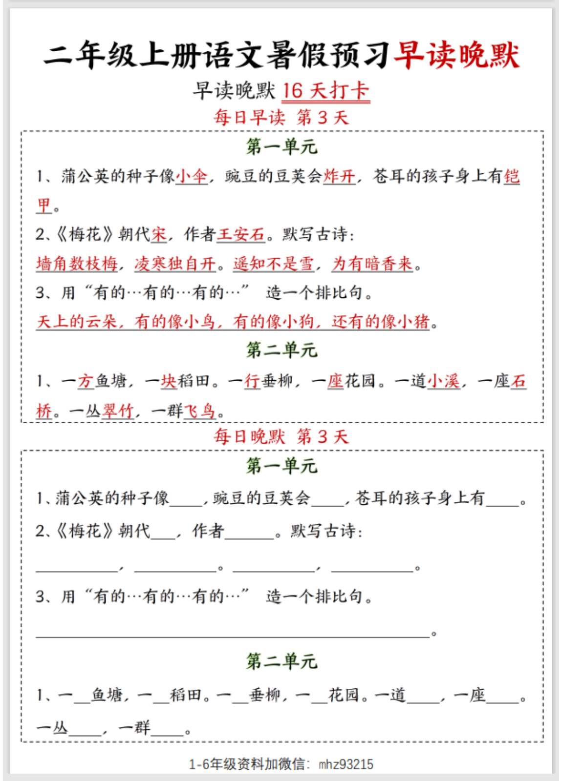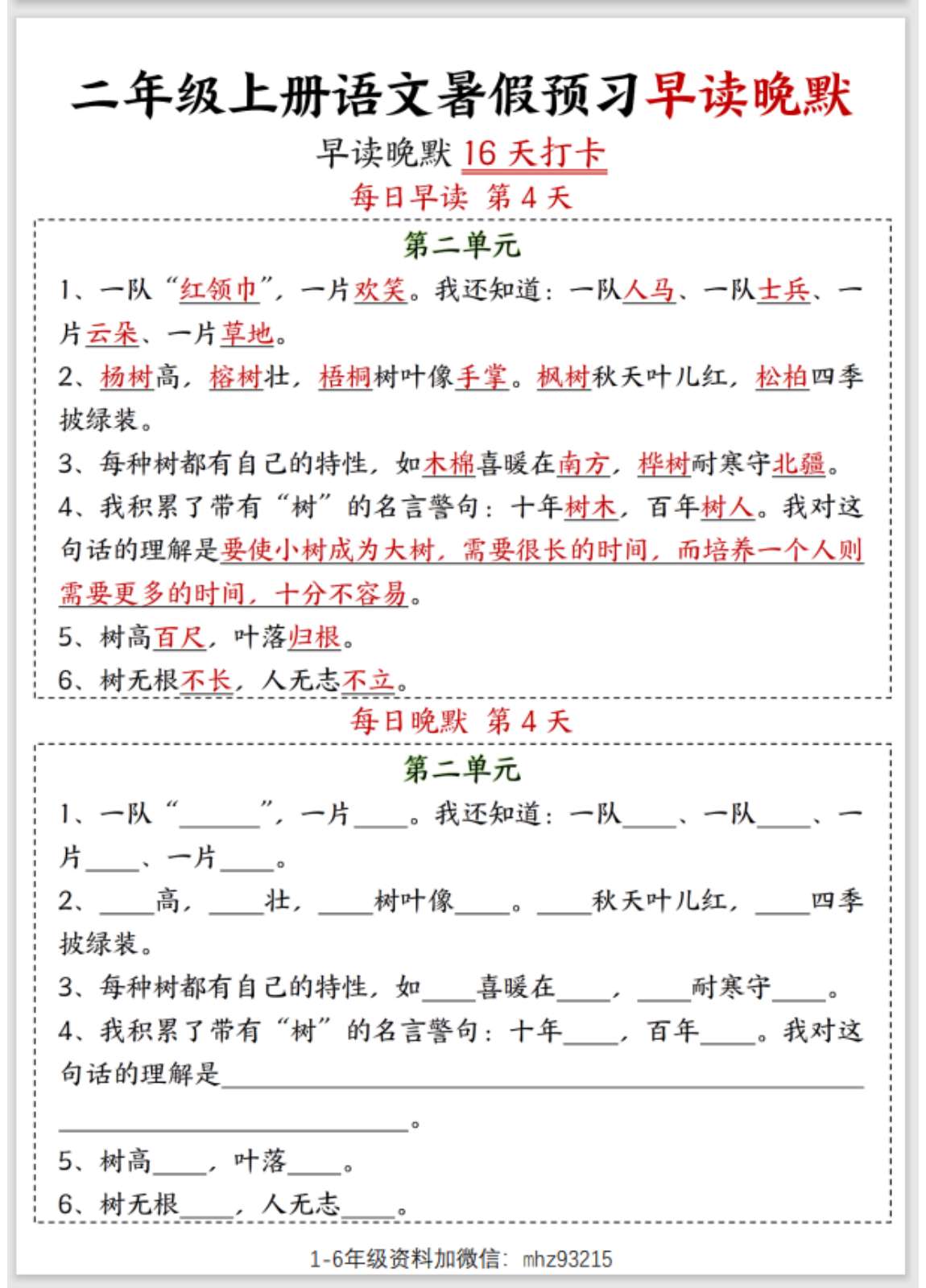 2024新版 二三四五六年级上册语文暑假预习期中期末复习每日早读晚默每日一练课本同步知识练习期中期末课本重点知识练习预习复习