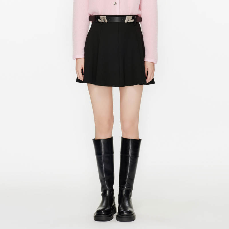 百褶裙女早秋2025新款 短裙高腰a字裙半裙黑色裙子针织半身裙秋冬