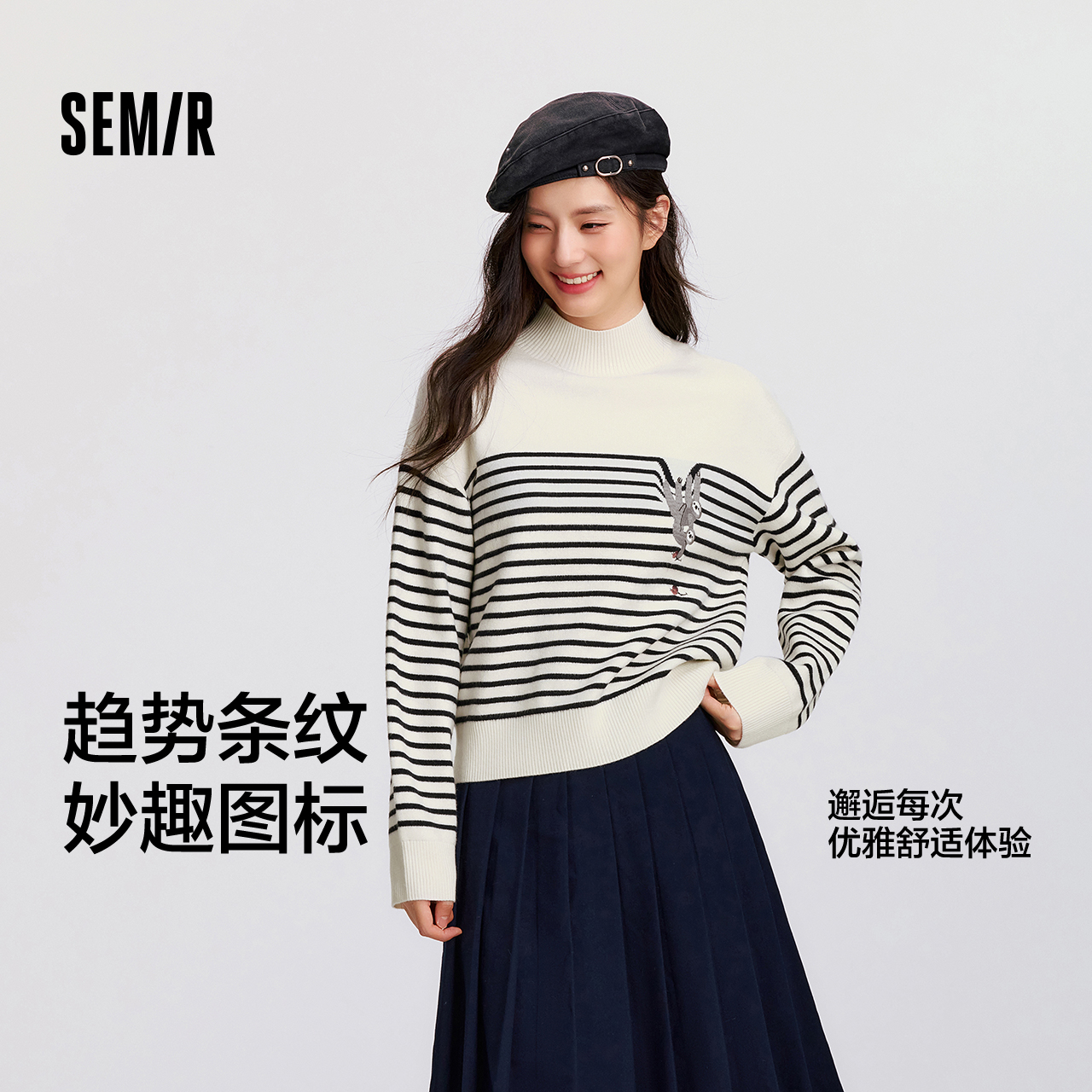 休闲毛衫 半高领刺绣条纹衫 森马中国国家地理系列毛衣女冬季 森柔