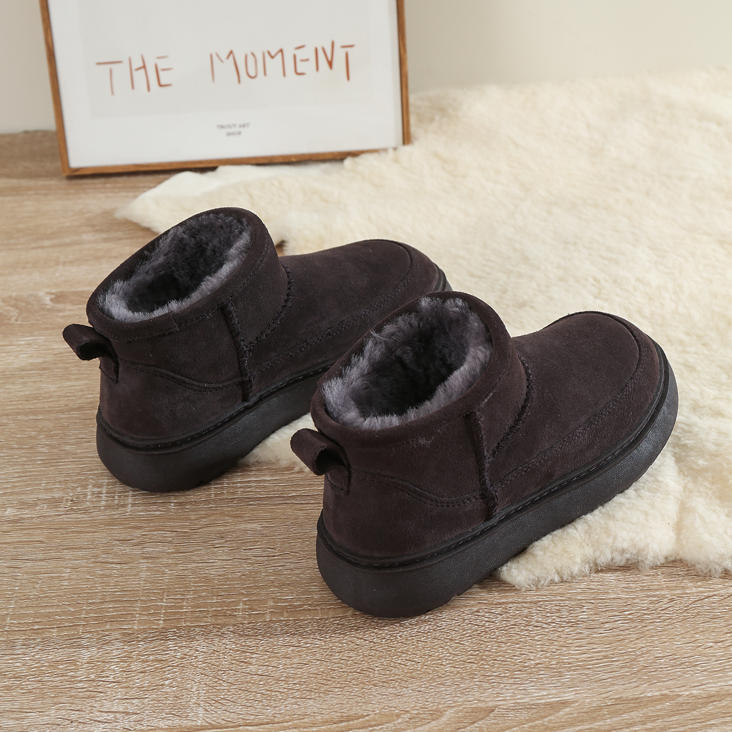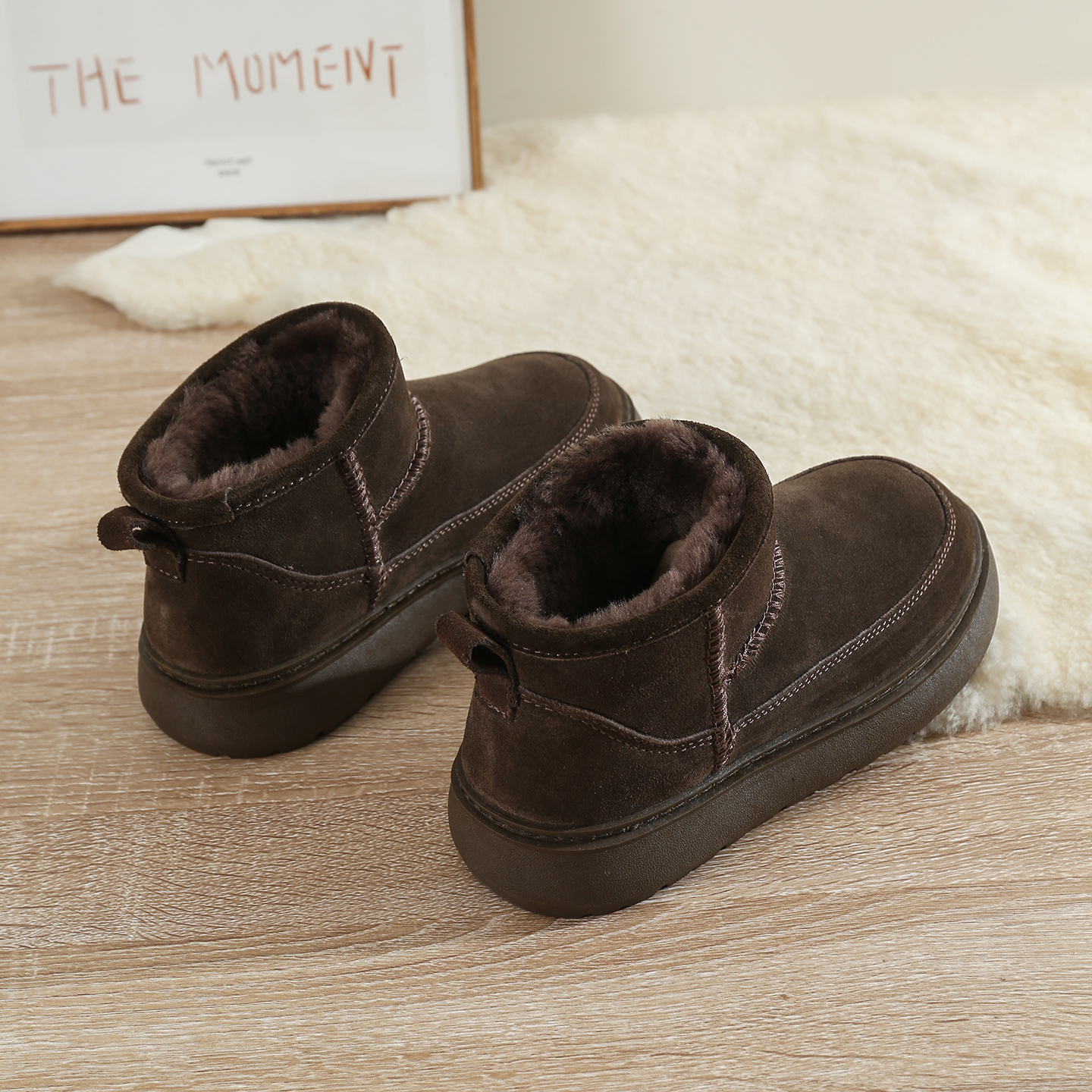 厚底短筒加绒加厚防滑皮毛一体面包棉鞋 羊毛雪地靴女2025新款 冬季