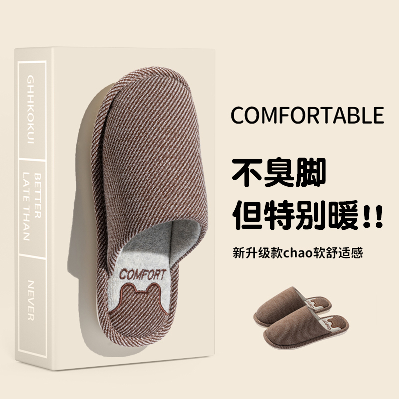 情侣厚底拖鞋 家居家用防滑室内棉麻布冬季 男 女士春秋四季 亚麻拖鞋