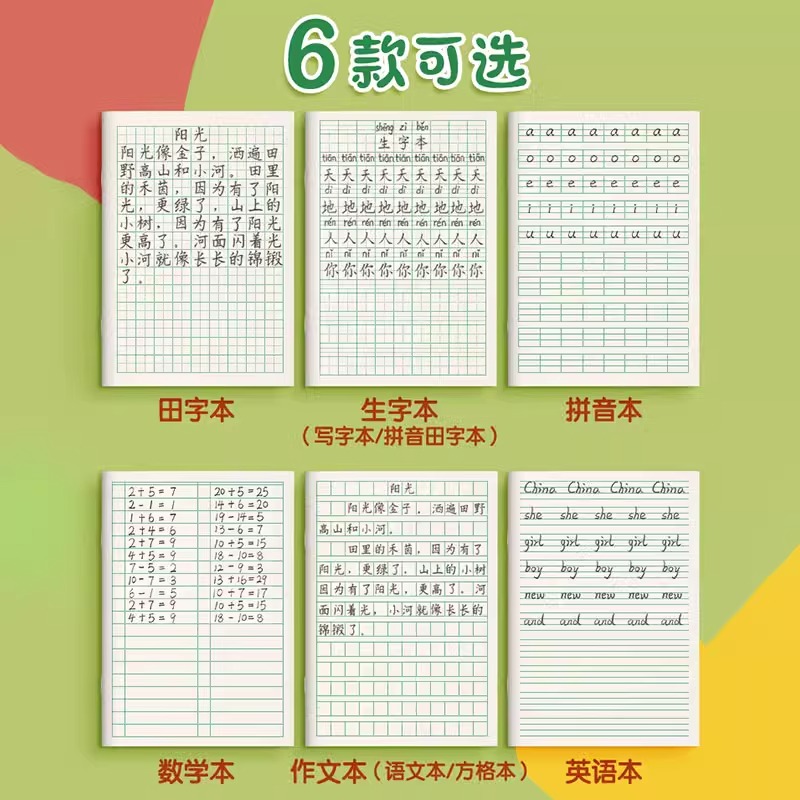 生字本小学生专用一年级作业本方格本田字格本全国标准统一汉语本幼儿园写字练习拼音本二年级数学本语文本子