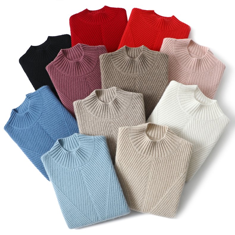 米皇2025秋冬新款 女休闲多色可选纯羊绒毛衣 半高领套头纯色羊绒衫