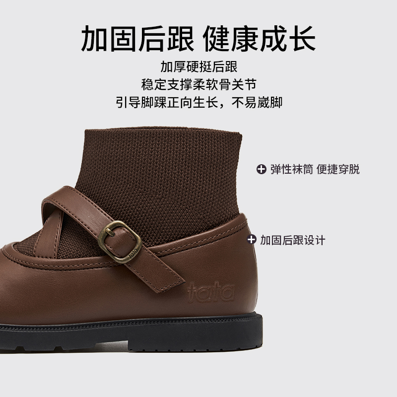 TATA他她童鞋 秋冬马丁靴复古宝宝公主靴子皮靴 女童袜靴2025新款