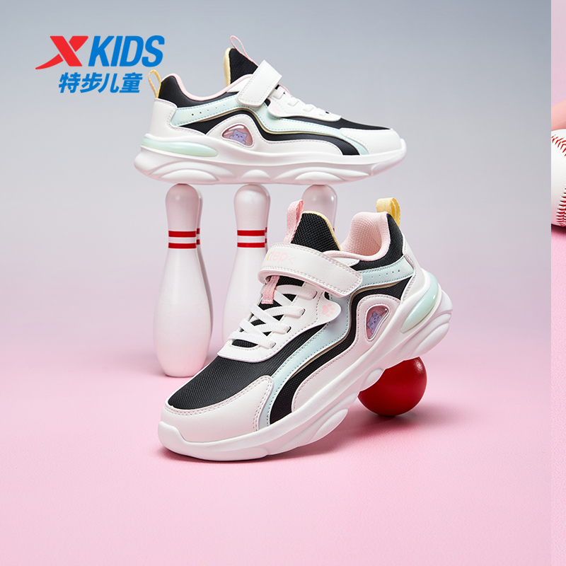 子大童鞋 特步童鞋 儿童革面保暖休闲鞋 魔术贴百搭运动鞋 女童春秋款