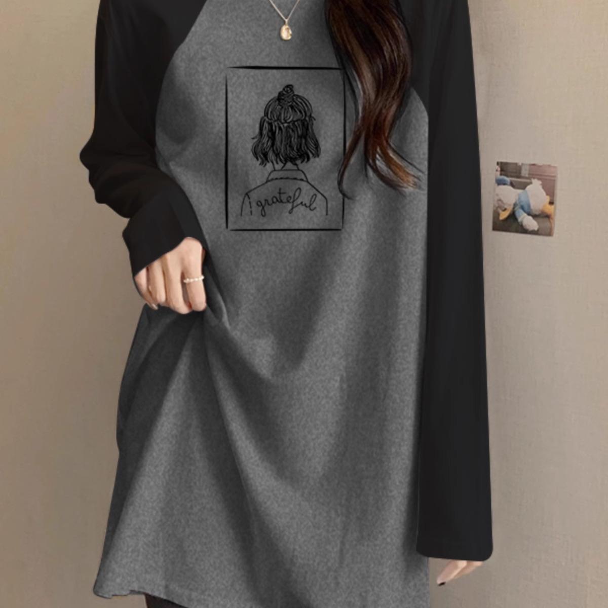 t恤女中长款 遮屁股长袖 包臀卫衣内搭 上衣春秋冬新款 搭配鲨鱼裤