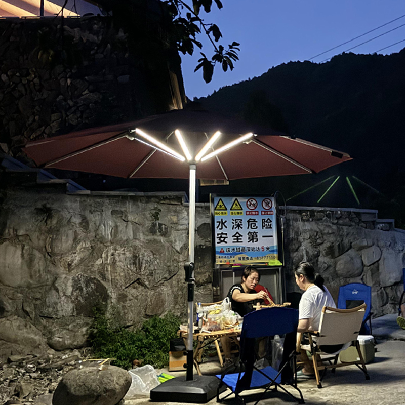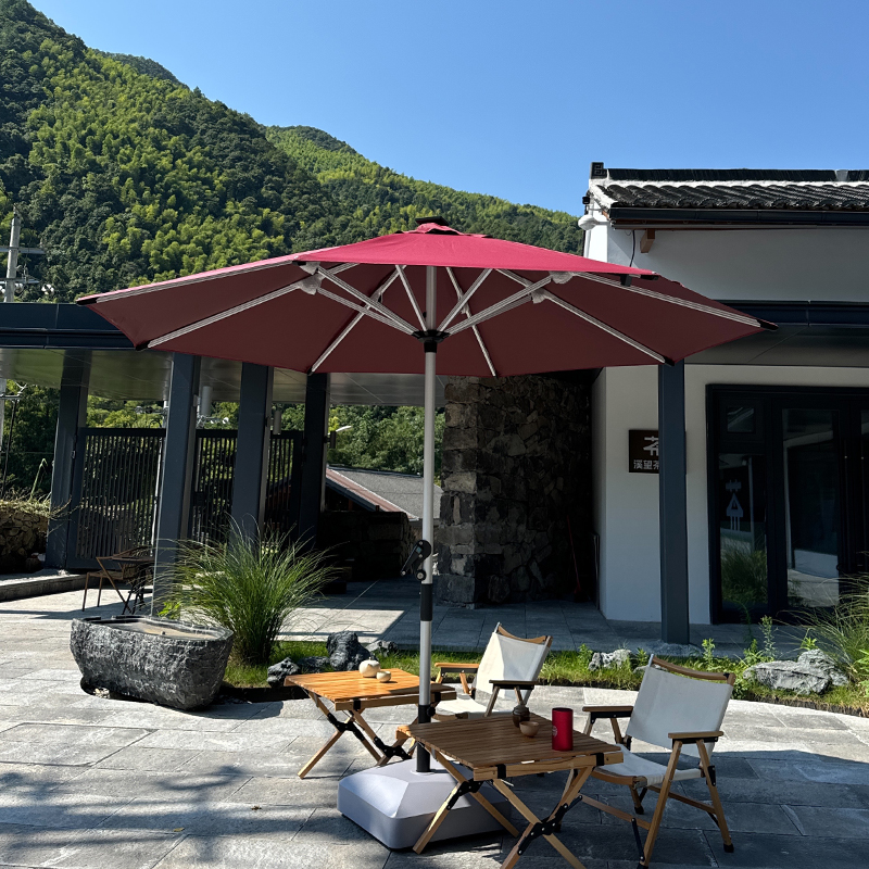 高端户外太阳能遮阳伞 院子露台外摆中柱伞 庭院别墅家用花园大伞