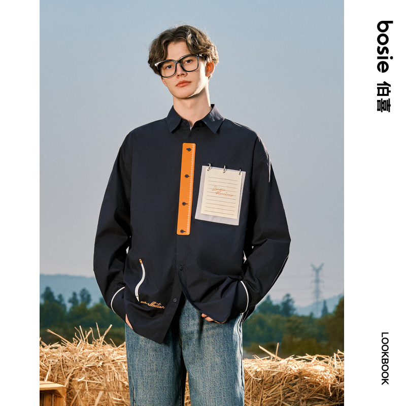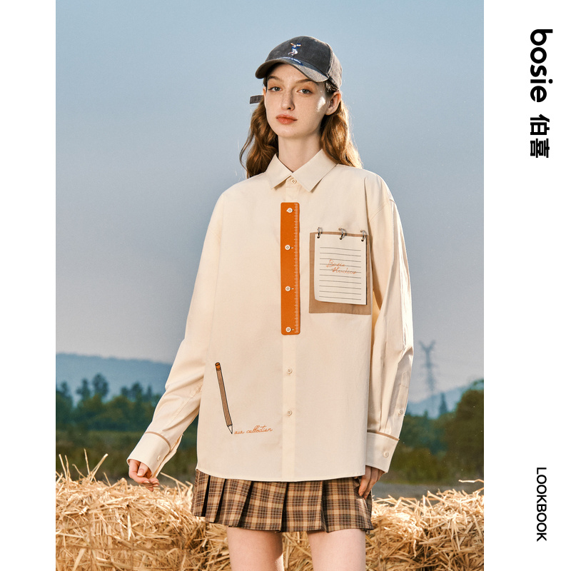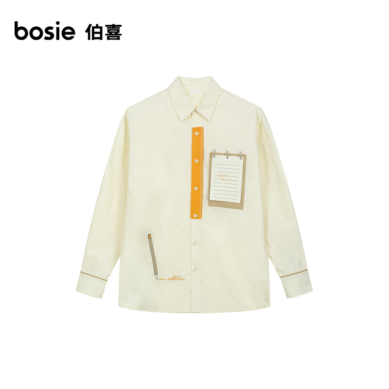 商场同款 衬衫 bosie2025春季 宽松休闲长袖 男情侣百搭衬衣 新款