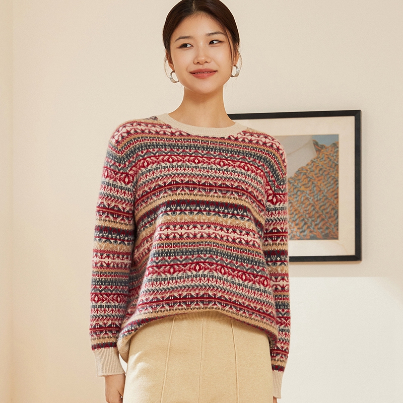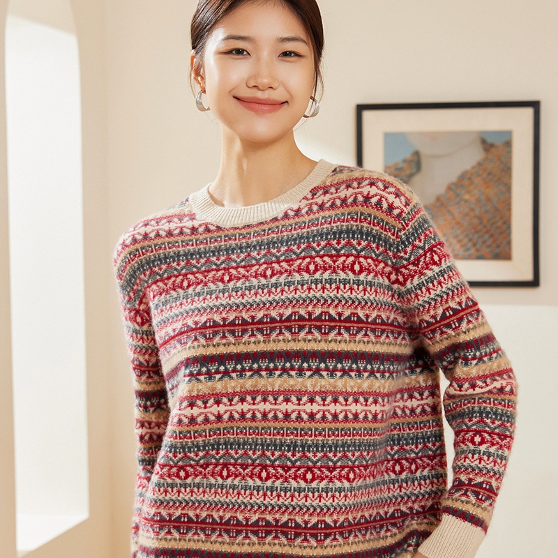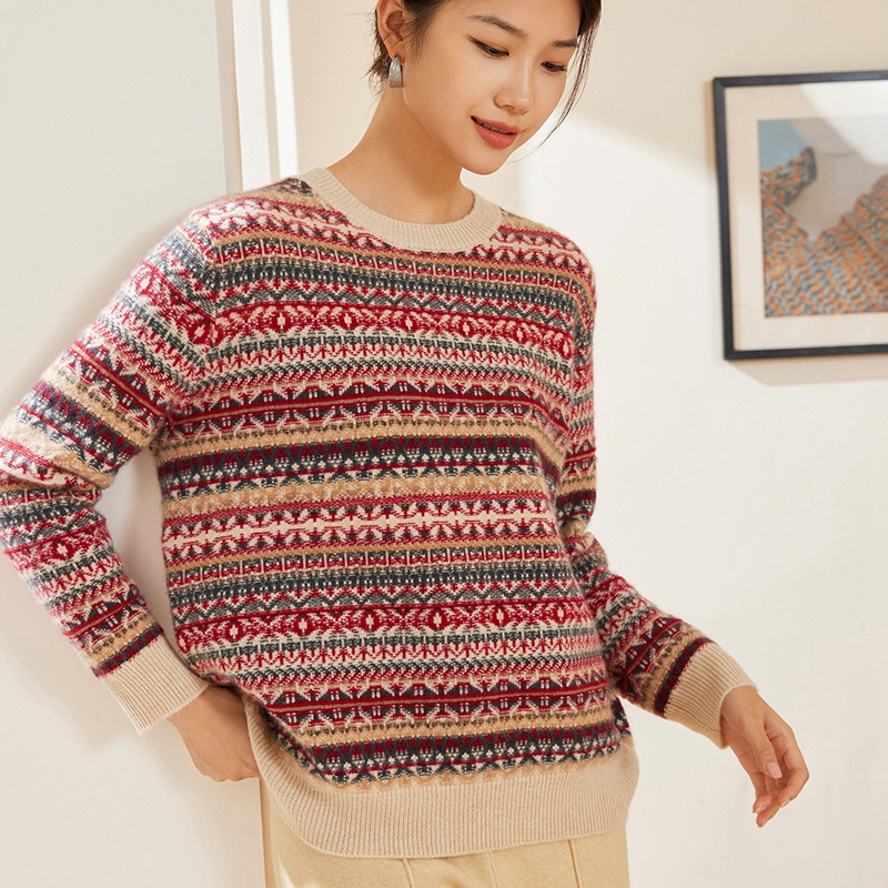 高级感上衣宽松打底针织衫 圆领100%纯山羊绒衫 女高端毛衣秋冬新款