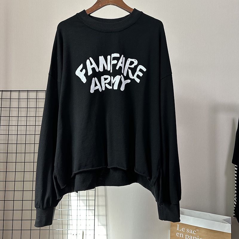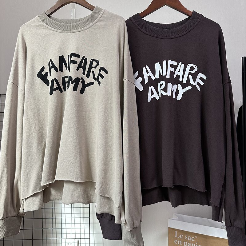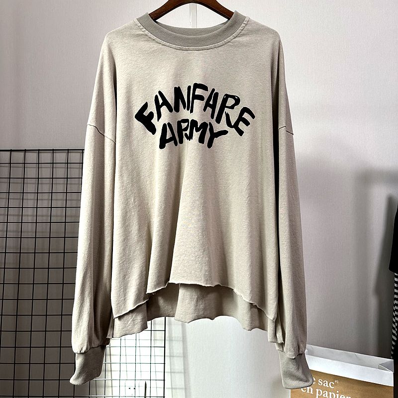 洋气休闲女上衣T恤打底衫 早秋新款 毛边宽松小个子短款 个性 潮 韩版
