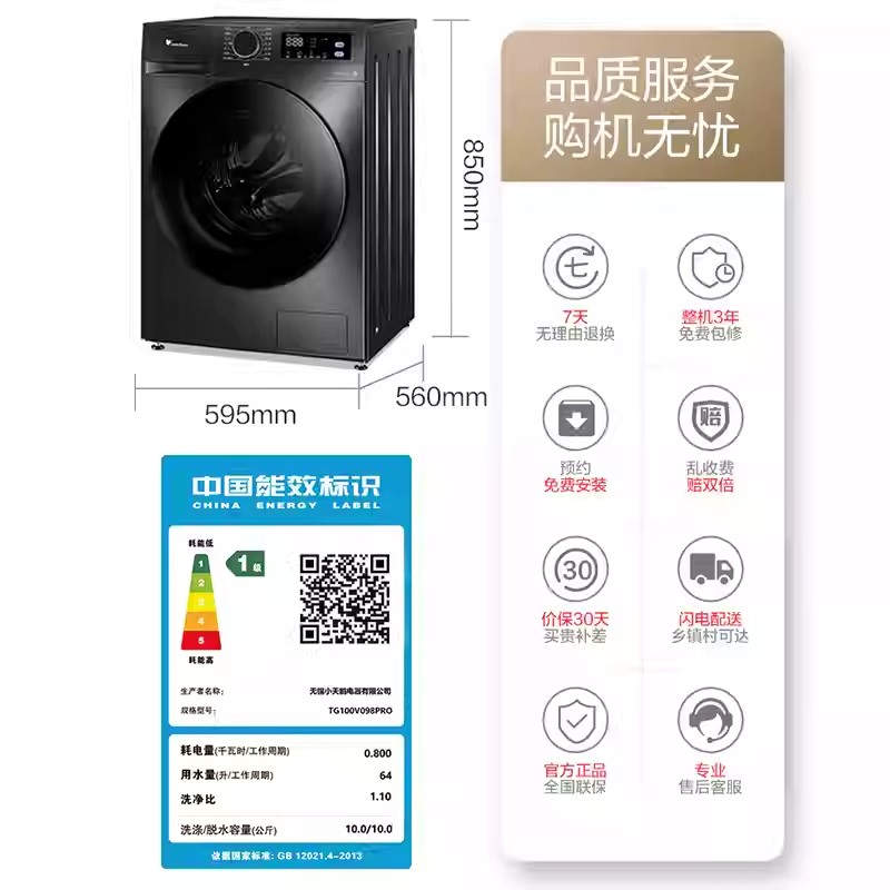 以旧换新小天鹅洗衣机10 12kg全自动家用滚筒洗烘脱一体机098pro