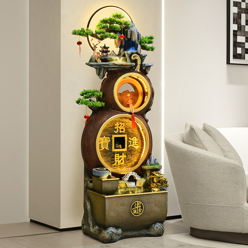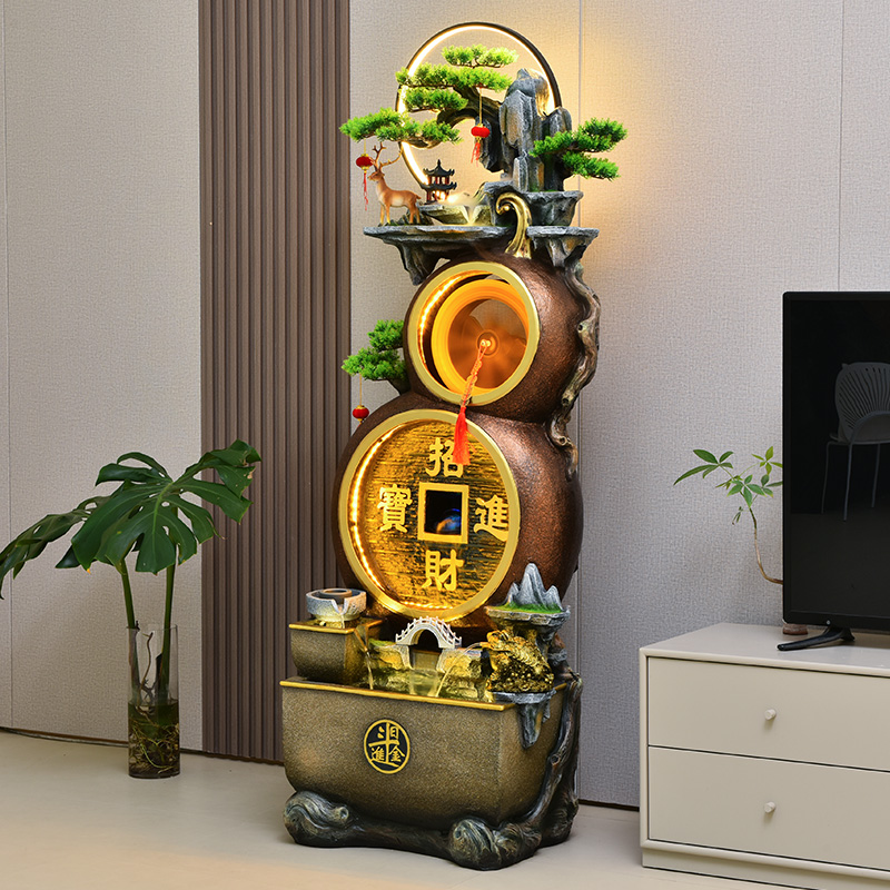 客厅招财风水轮喷泉聚宝盆假山生财流水葫芦摆件循环水景开业送礼