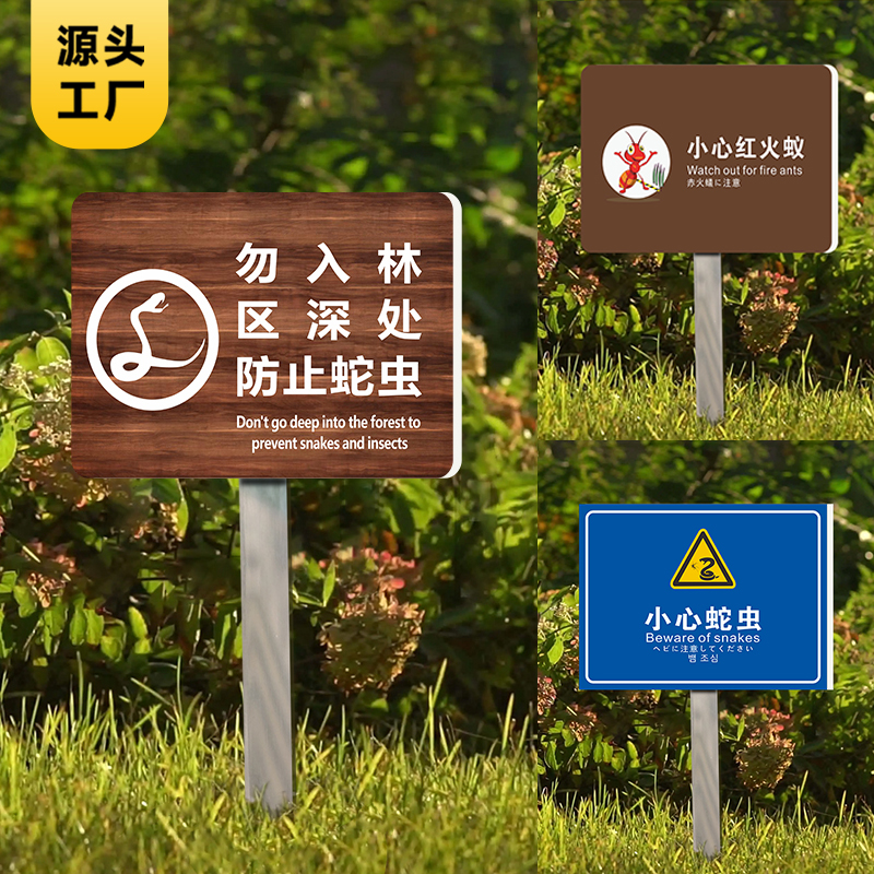 小心蛇虫红蚂蚁老鼠毒虫注意安全标识牌插地式 必备户外防水防晒支持定制谨防叮咬伤防野狗 标志牌公园森林夏季
