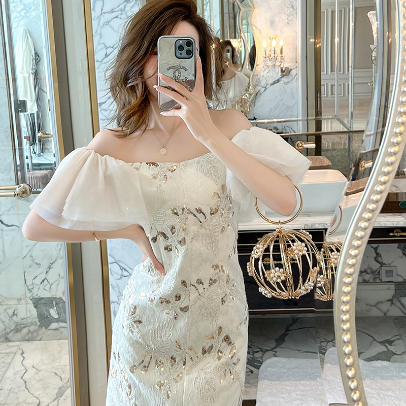 生日party小礼服裙子女高级感温柔风名媛气质法式 一字肩连衣裙夏