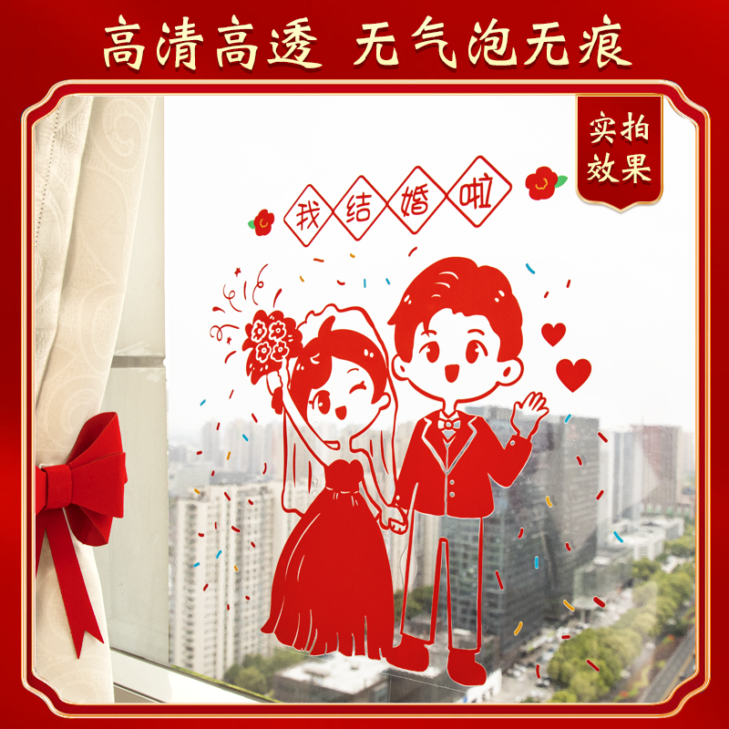 婚车喜字静电贴纸婚庆结婚布置装 饰静电贴迎亲车队玻璃窗贴囍字