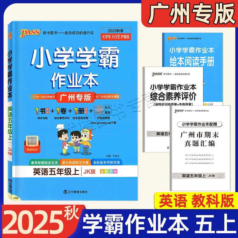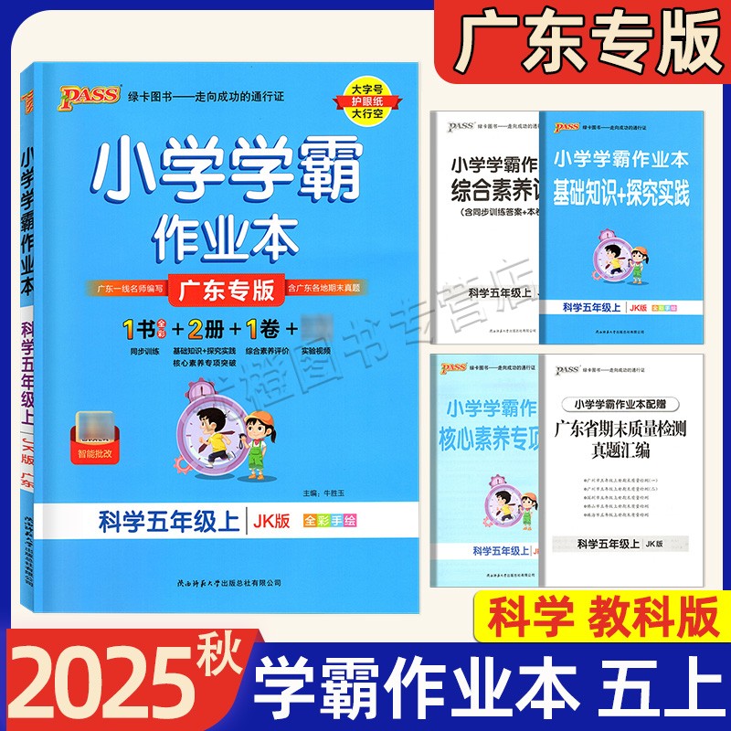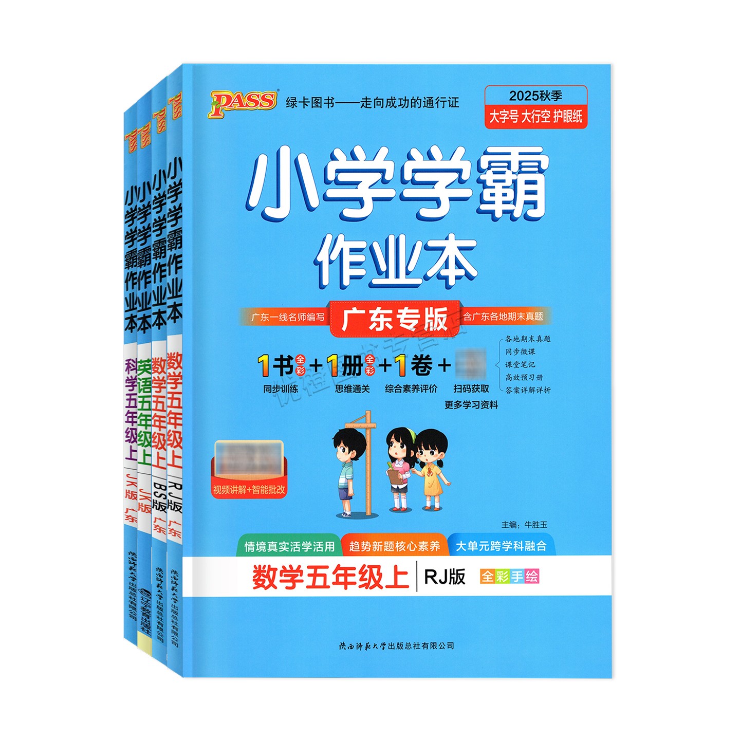 小学学霸作业本 2025秋新版 五年级上册 语文数学英语道德与法治科学人教RJ北师BS教科版 小学5上下册同步课后练习 广东专版