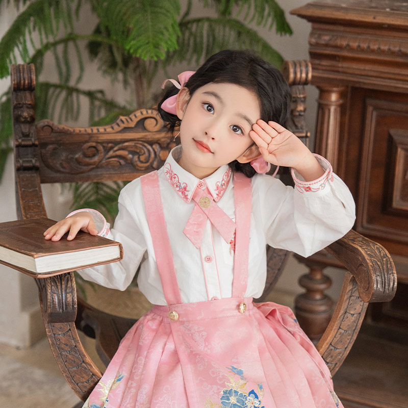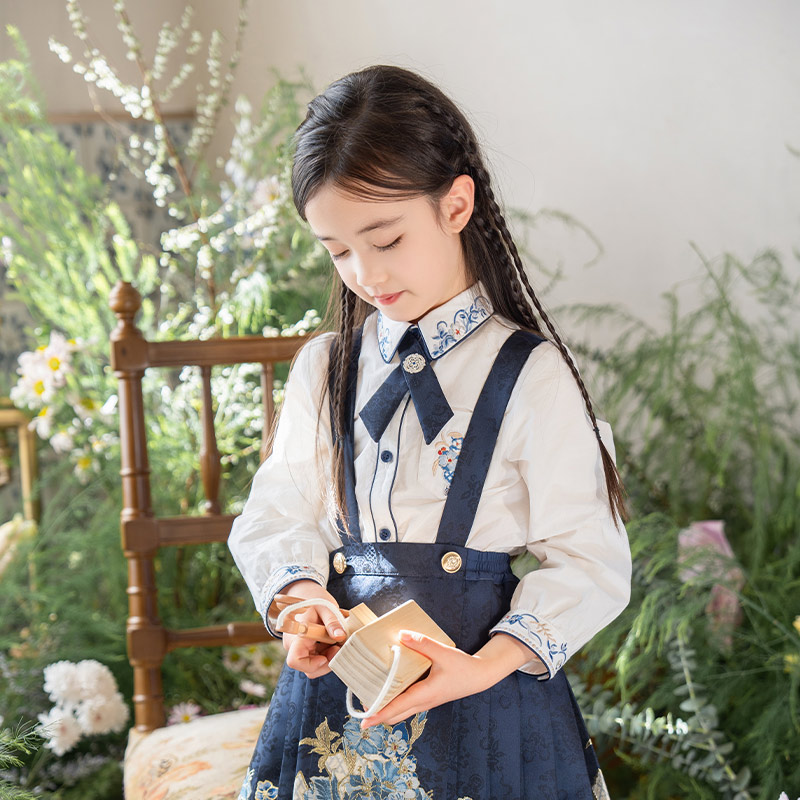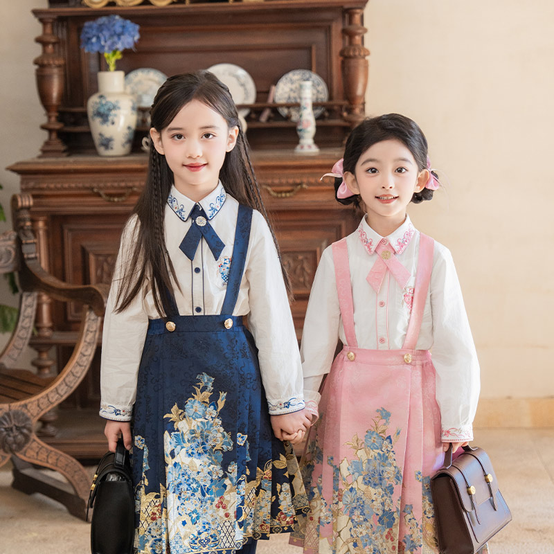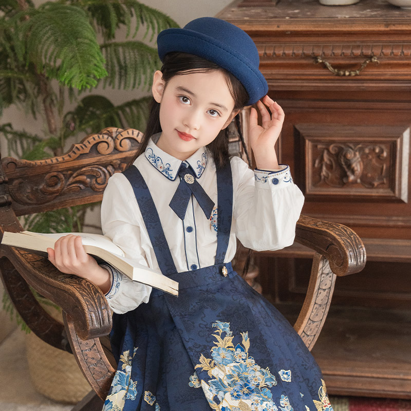 国风汉服女童新款 套装 长短马面裙春夏 白玉青花 十三余童装