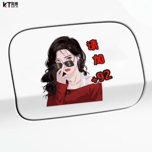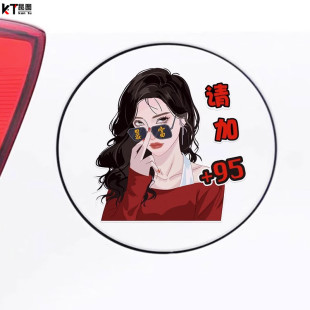 汽车油箱盖车贴创意暴富女孩请加92 95号柴油汽油文字加油盖贴纸