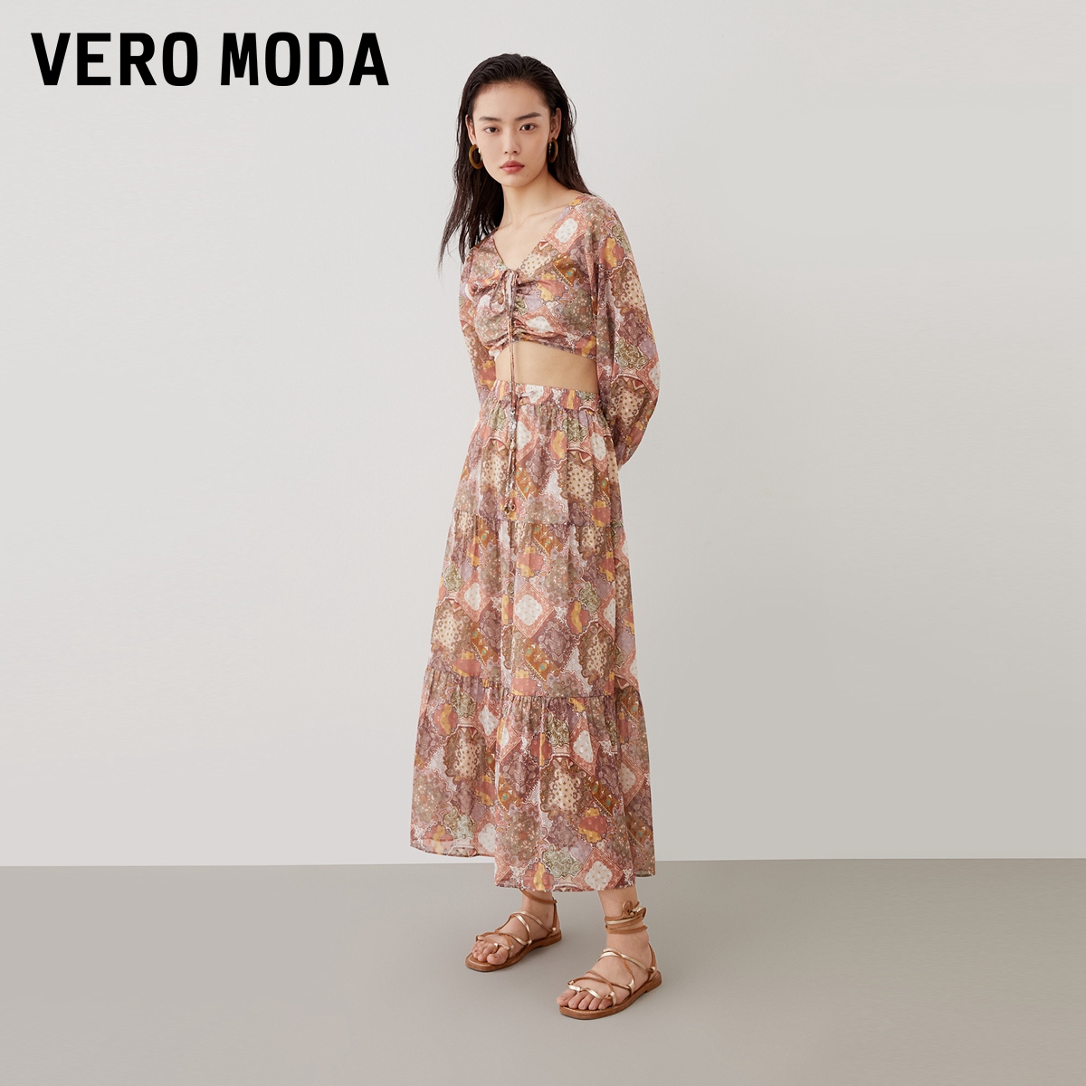 流行 长袖 Vero Moda奥莱上衣女秋冬清仓波西米亚风度假抽绳V领短款
