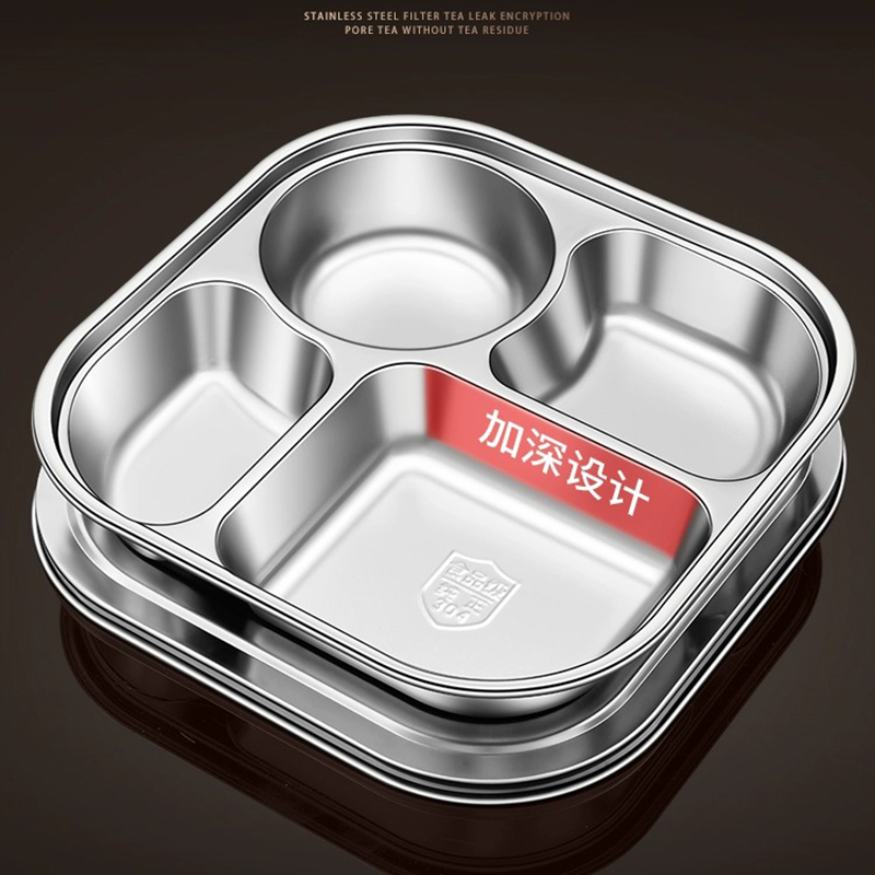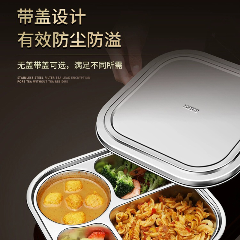 304不锈钢快餐盘带盖上班族成人四格大人分格饭盒学生食堂打饭碗