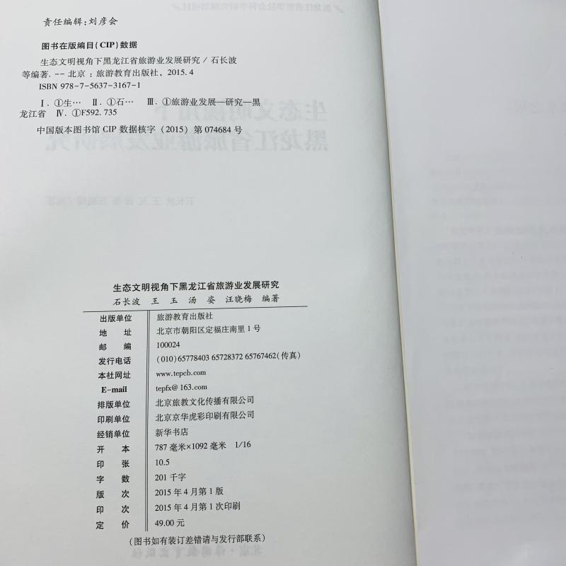 旅游学术研究丛书旅游教育出版 汤姿 社 王玉 生态文明视角下黑龙江省旅游业发展研究9787563731671石长波