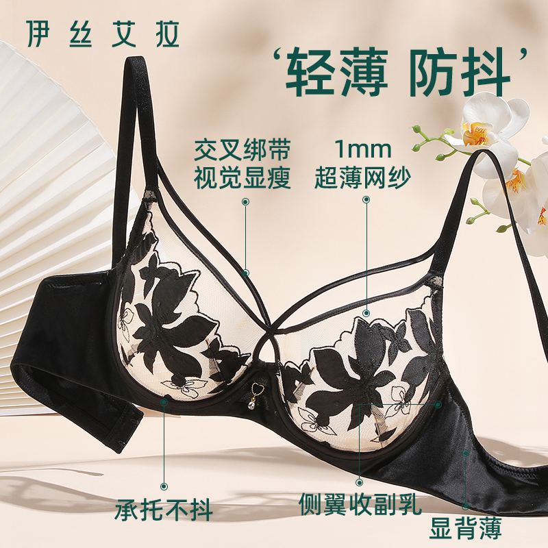 内衣缎面聚拢性感无钢圈文胸罩套装 虞书欣同款 ubras王妃蕾丝法式