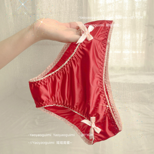 蝴蝶结女士低腰提臀三角裤 夏季 头 女薄款 柔软丝滑缎面亲肤性感内裤