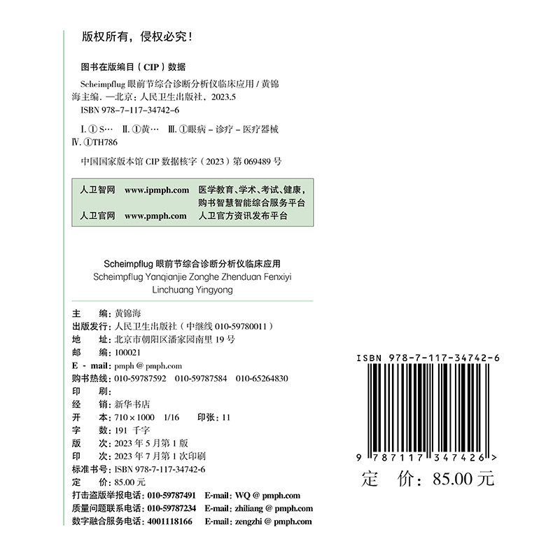 精装 社 Scheimpflug眼前节综合诊断分析仪临床应用 人民卫生出版 9787117347426 黄锦海 现货正版