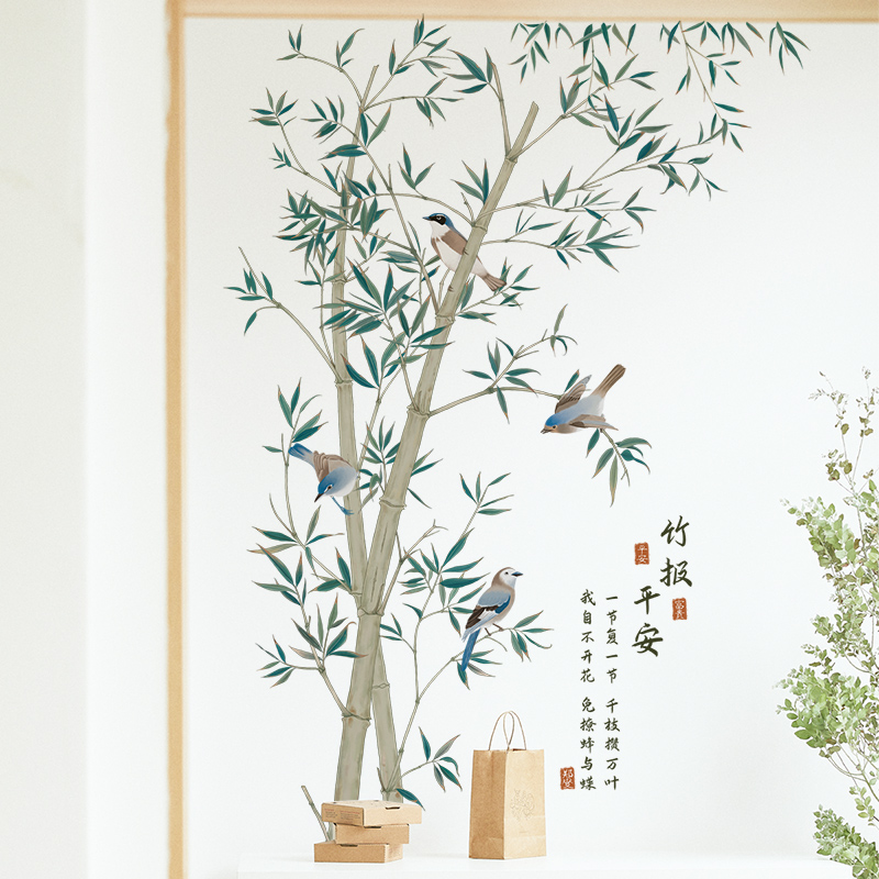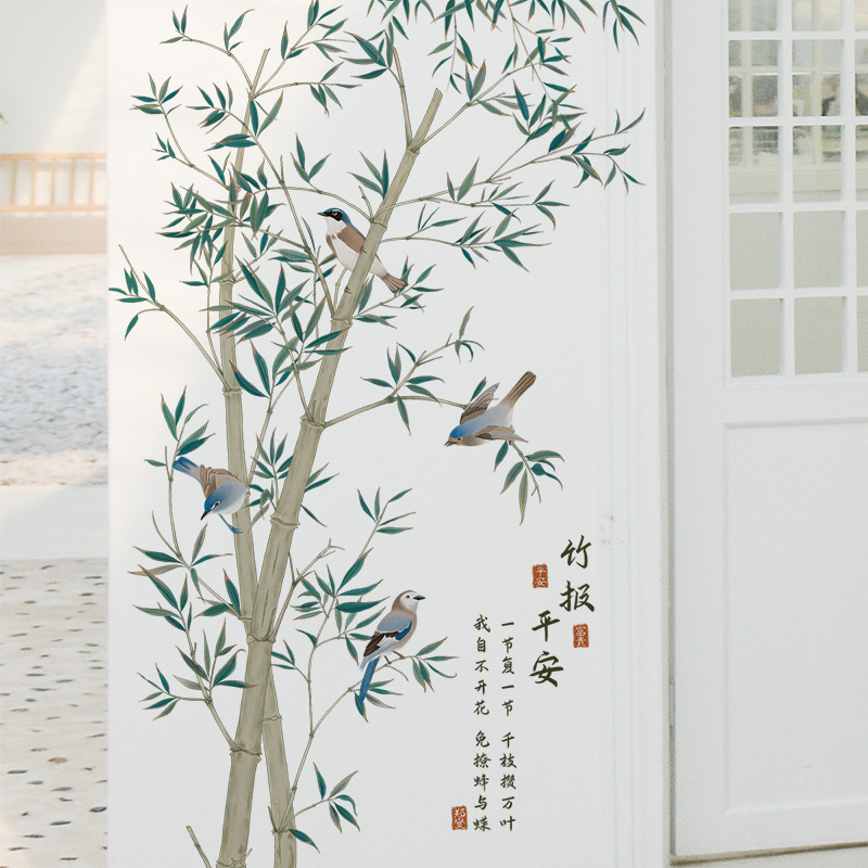 中式 饰客厅卧室墙角房门寝室 竹子墙壁贴纸防水自粘贴画国风墙面装