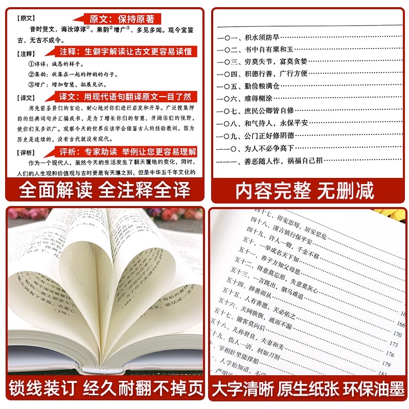 增广贤文 课外书 原文全译注国学经典 增贤广文成人版 中国古代家风家训警世喻人谚语文献家教格言名句书 诵读古今贤文历史故事 正版
