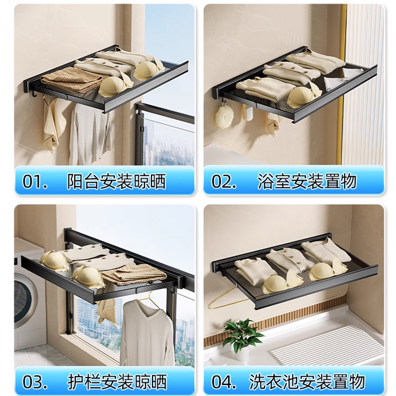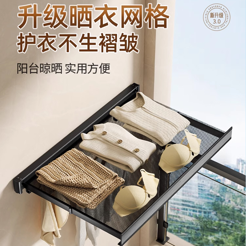 晾衣网阳台神器晒衣篮免打孔羊毛衫 平铺网兜伸缩隐形凉袜子晾晒架