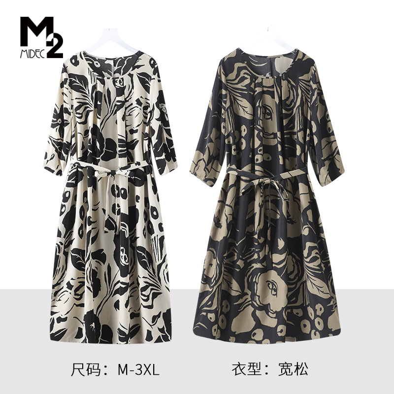 微胖中年妈妈七分袖 宽松大码 雪纺直筒连衣裙 2025年春秋新款 M2女装