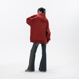 美式 春秋款 潮牌学生外套上衣 连帽卫衣女2025年新款 复古酒红色开衫