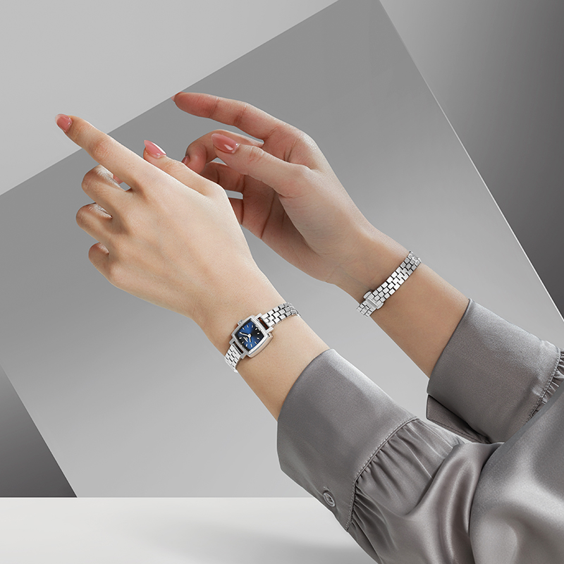 Tissot天梭官方新款 蓝盘小可爱乐爱石英小方表女表手表