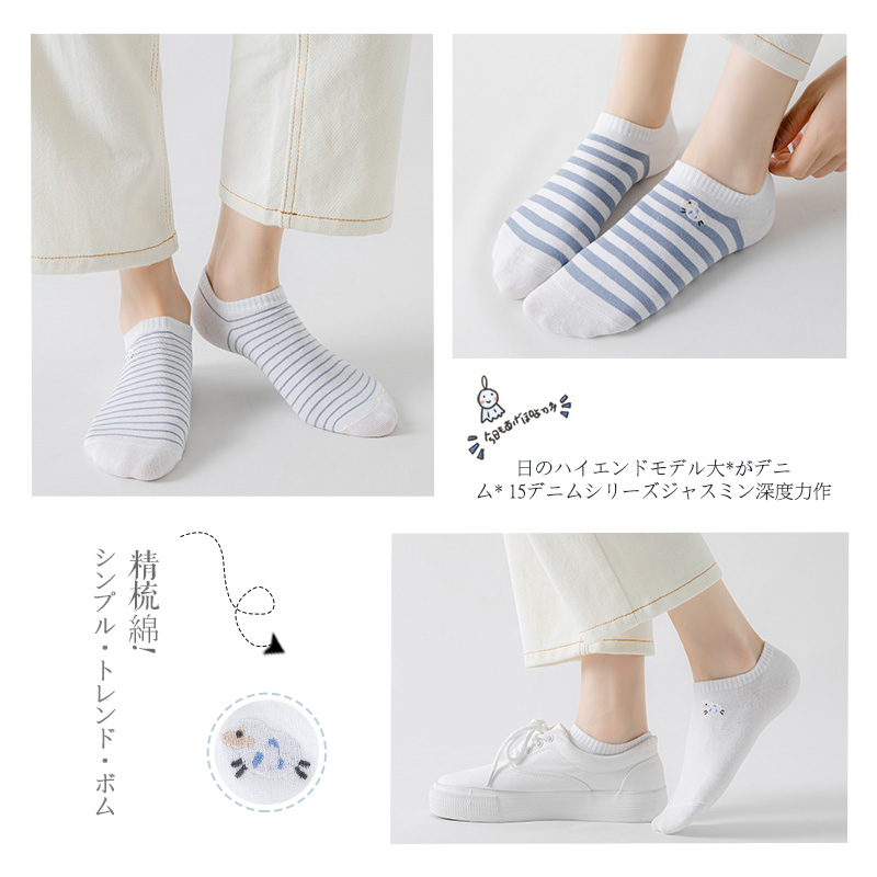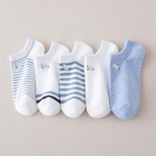 袜子女短袜春夏季 船袜女浅口低帮可爱日系低腰卡通蓝色 薄款
