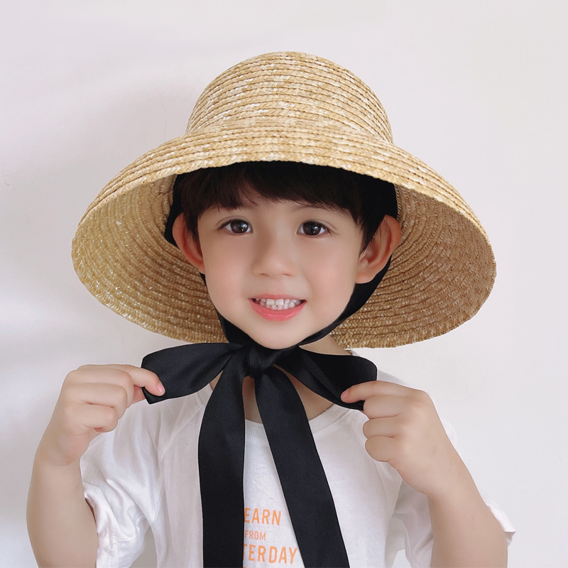 儿童防晒帽夏季 麦秆草帽男女童大帽檐遮阳遮脸太阳帽宝宝渔夫帽子