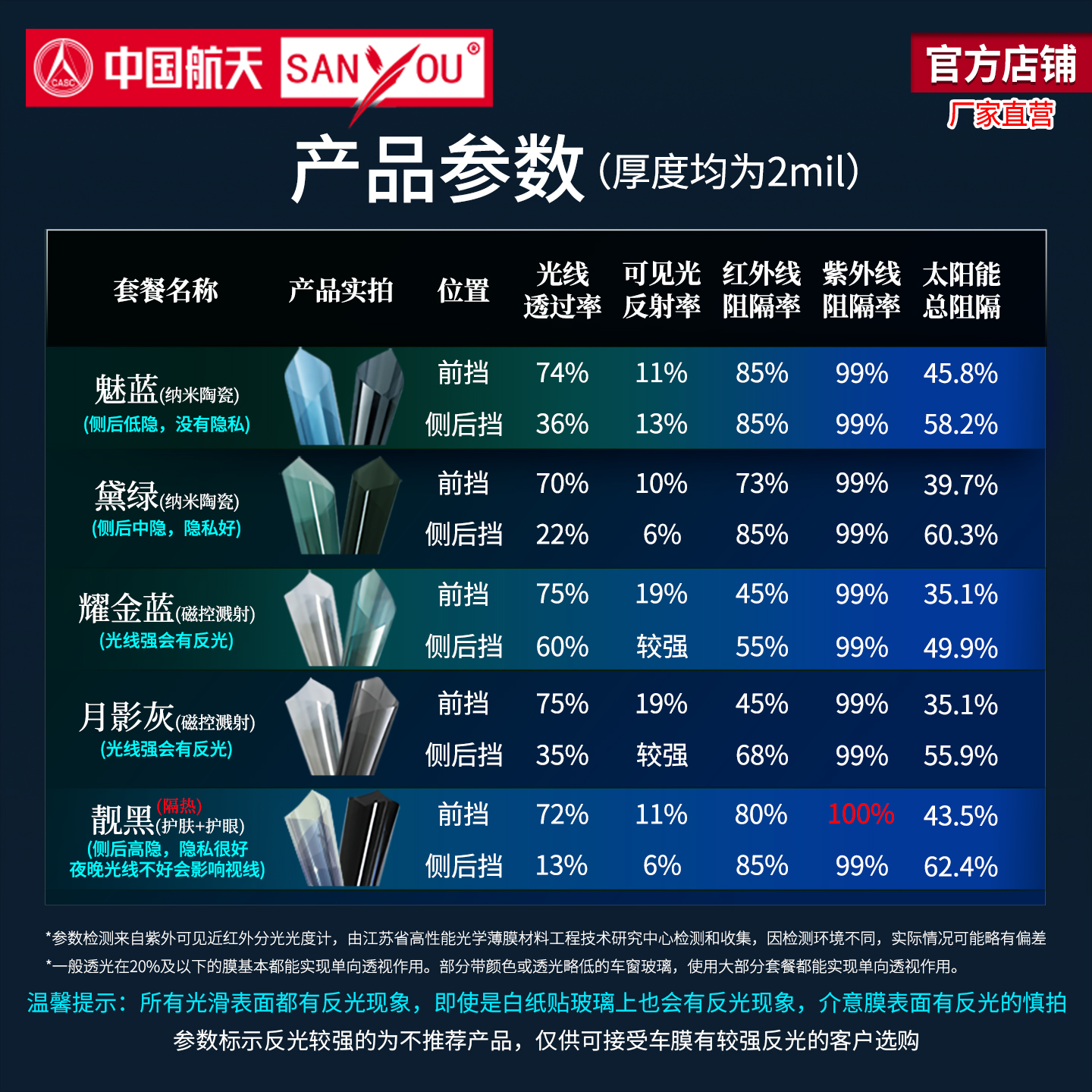 中国航天SANYOU山由汽车贴膜玻璃隔热防飞溅窗膜适用于比亚迪系列