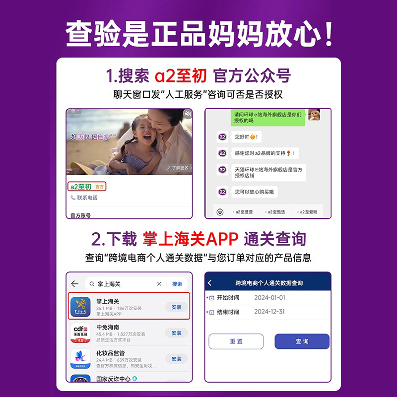 澳洲a2奶粉2段婴幼儿宝宝儿童紫白金牛奶粉二段新西兰进口非至初