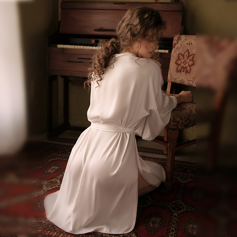 夏季 浴袍性感薄款 家居服宽松胖mm 睡袍女200斤冰丝仿真丝长袖 大码