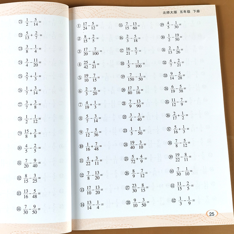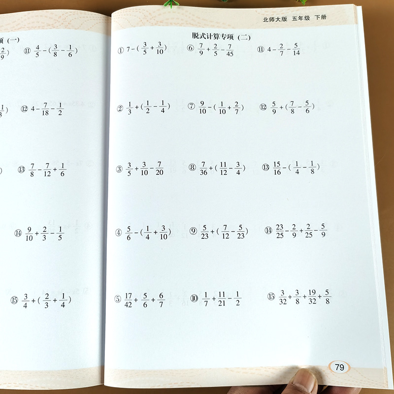 计算题脱式 北师大版 小学5年级下数学专项训练教材同步练习册竖式 天天练 强化练习题应用题语文课课练课堂笔记 五年级下册口算题卡