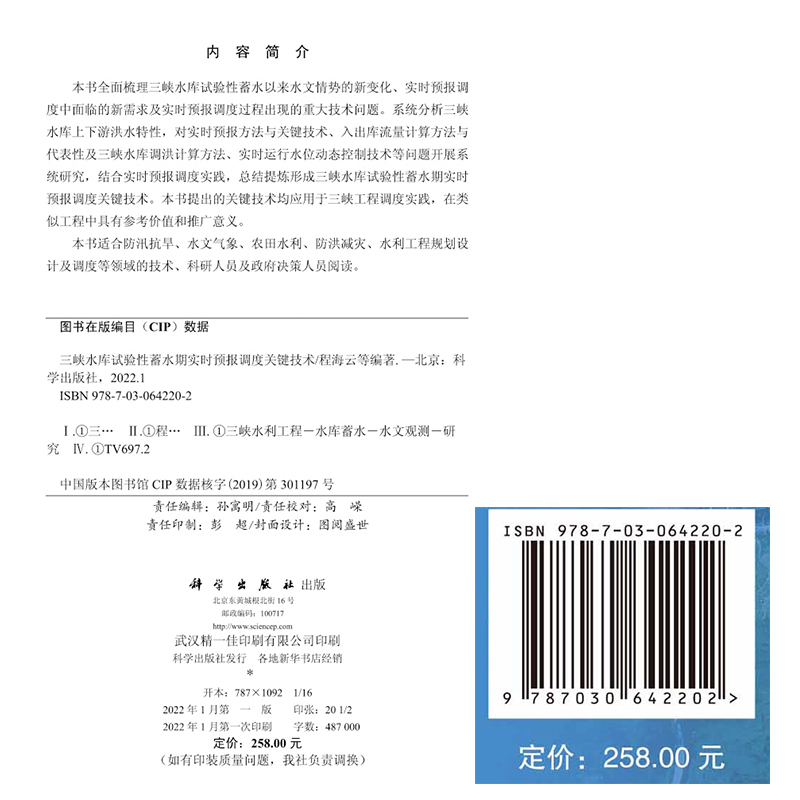 现货三峡水库试验性蓄水期实时预报调度关键技术程海云等编著科学出版 社9787030642202