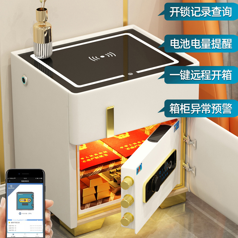 虎牌保险柜家用床头柜54cm智能WiFi小型抽屉保险箱隐形床头柜皮质软包感应灯无线充电密码 保险柜